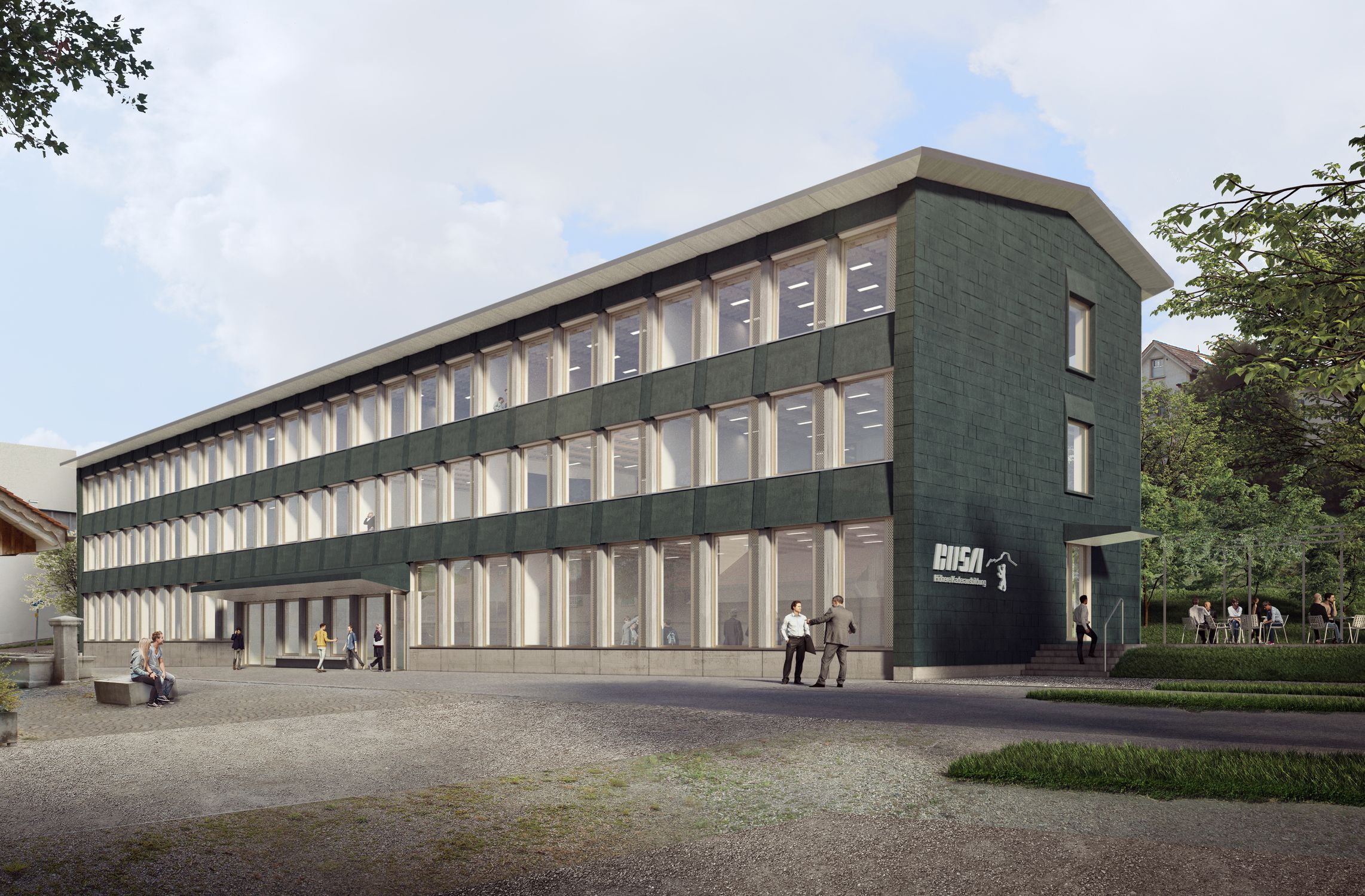 In den nächsten zwei Jahren baut armasuisse Immobilien, das Immobilienkompetenzzentrum des VBS, ein modernes Ausbildungsgebäude für die Berufsunteroffiziersschule der Armee (BUSA). Dis BUSA ist die Ausbildungsstätte für angehende Berufsunteroffiziere aller Truppengattungen. Auf 3’600 Quadratmetern Geschossfläche beinhaltet der Neubau Schulungsräume, Rapporträume, Büros, sowie Lagerräume und Garderoben. Das viergeschossige Gebäude ist als Holzbau konzipiert, wobei die Decken in Holz-Beton-Verbundbauweise ausgeführt werden. Das Untergeschoss sowie das Treppenhaus mit Liftschacht werden hingegen als Stahlbetonkonstruktion umgesetzt.